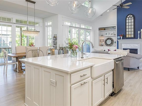 Nearly 4,000 square feet of total finish! This stunning Neighborhood Builders resale has gorgeous finishes throughout and stuns from the moment you enter. Vaulted ceilings and natural light lend to the open and airy feeling of this home. The open kitchen features floor to ceiling cabinets, a hidden pantry, farmhouse sink and a large island with breakfast bar. The dining space looks out to the covered deck and private backyard. The first floor features two bedrooms on one end with a jack and Jill bath, plus an additional half bath for guests. The owners suite features dual split vanities, custom tile shower and soaking tub. The laundry and mud room space is cute as can be with custom flooring and plenty of space. The basement features a custom wood wall in the sunken family area and huge living space, great for an additional red room. Two basements and full bath are also found in the daylight basement! This home features many upgrades and unique design details-call today!