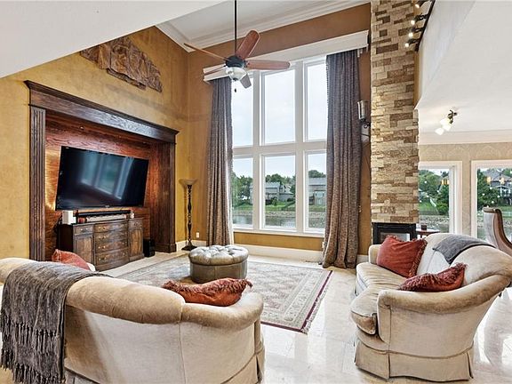 HOME Sweet HOME! Absolutely Stunning Home in Monarch View with Gorgeous Updates throughout! Incredible 2 Story that over looks a large pond with a full finished walkout basement! Spacious and Open Floor Plan with Custom Finishes...Kitchen built for a chef- Gas Range, Pro Series Fridge, Built In Coffee Maker, Pot Filler, top of the line SS appliances, French Oven, walk-in pantry, granite counters, kit island. Large Great Room with soaring vaulted ceilings and magnificent sunlight windows overlooking the water, stone see thru FP, Turkish Travertine Tile Floors, built ins. Formal Dining Area. Pride of Homeownership shows in top notch trim work, crown molding, wainscoting, woodwork throughout, and more. Stunning Finished Custom Garage, gentleman you found your Man Cave/Escape Area/Piddle Space- padded flooring, fans, side garage door openers, extra lighting, air hose, built-ins, etc. Master Suite with FP, peaceful views over the water & fountain, and beautiful Master Bath featuring his/her vanities, tile shower, tub, walk-in closet. 2 additional bedrooms upstairs, Full Baths attached to both. Secret Hidden Safe areas in 3rd bed. Full Finished Walkout Basement with tons of space. Includes Wine Cellar with cigar humidor, stubbed for wet bar, 4th bedroom with full bath, storage space. New composite deck with iron spindles overlooks large wrought iron fenced in yard with covered patio. Many New and Cool features throughout. All stools have a bidet, high end Adorne light switches/outlets throughout, New H2O heater, newer HVAC, attic fan, hue lighting, cedar closets throughout. Enjoy N relax on the back deck with a cup of coffee overlooking the serene water setting as the sun rises. Entertain and Host Chief's parties on the deck or patio. Spacious yard for the kiddos to play & pets to roam. Front Porch with Cast Stone & Huge Iron Gates. Lovely Curb Appeal welcomes you HOME! Quiet Established Neighborhood, features pool w/hot tub. Playground + Walking Trails. Your HOME Awaits!