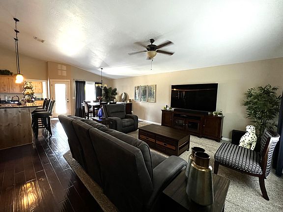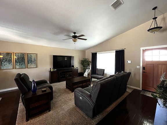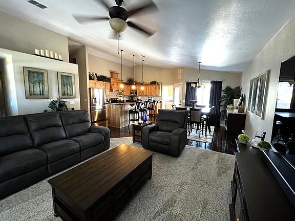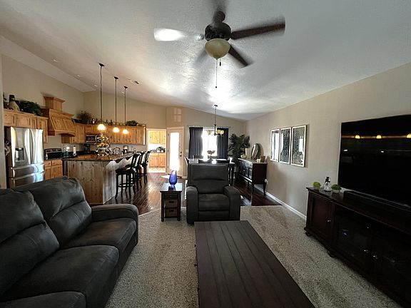 Quality-built home by Northridge Homes LLC in GP School Dist. 7. A plethora of upgrades featuring custom kitchen cabinetry, crown molding, island kitchen, pendent lights, granite counters throughout, stainless appliances, glass top range/oven, double door refrigerator, undermount stainless sink. Spacious great room, vaulted ceilings, custom lighting, ceiling fans, multi-tone paint, engineered hardwood floors, large master/master bath, double sinks, linen cabs, walk in closet w/custom shelving. Bedrooms feature custom closet shelving. Dramatic contrast w/rubbed bronze levers, white custom doors, full window trim. Large laundry, more custom cabinetry/granite. Double car finished garage w/built in cabinetry, ledgestone accents, beautiful back yard with seating area/covered patio/water feature/fenced/landscaped. Near Asante/parks/shopping.