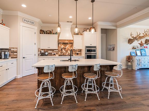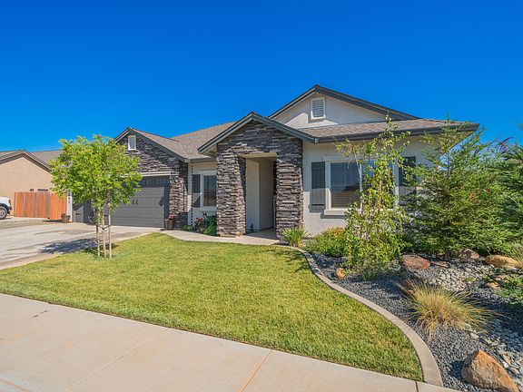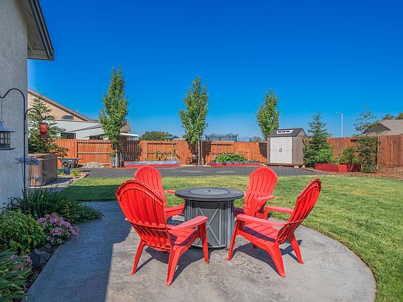 Welcome to Shastina Ranch, an immaculate house with upgrades galore. This family-friendly home features an open floor plan perfect for gatherings and everyday living. The kitchen boasts quartz countertops, a pot filler, and a custom hood, while the entire house is adorned with elegant crown molding. Enjoy the cozy ambiance of the custom fireplace and the airy feel from the 5-foot custom living room fan and high ceilings, which reach 10 feet with 11-foot coffered details. The master bathroom includes a luxurious frameless glass shower, and luxury vinyl plank (LVP) flooring runs throughout the house. Eight-foot interior doors enhance the sense of space and elegance. Step outside for a custom-stamped and stained rear patio, an oversized rear gazebo, and a fully landscaped yard, perfect for outdoor activities and relaxation. The polytech garage floor coating adds durability and style. This home seamlessly blends comfort, luxury, and modern amenities, making it a perfect fit for your family.