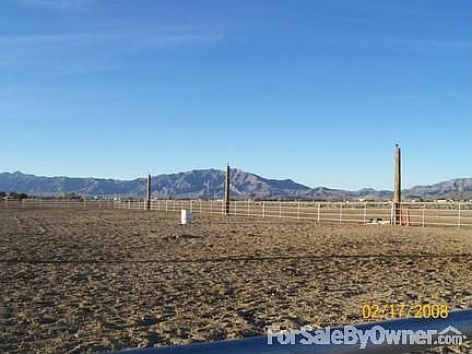 This home is a 2003 3 bedroom, 2 bath manufactured home with detached 2-car garage situated on 5 acres. It is built on a permanent concrete foundation, meeting FHA requirements. Recessed entry with ceramic tile. Kitchen has all upgraded GE appliances, kitchen island, recessed florescent lighting, and a large pantry. There is a separate utility/laundry room with cabinets and shelving. Home has an open and split floor plan. Master bedroom has a lighted walk-in closet. There is a sitting room/office off the master bedroom. Master bath has a large garden tub with separate enclosed oversize shower. This home features new Pergo flooring and upgraded carpet, ceiling fans throughout, and beautiful window coverings. French doors off dining room to 40X12 covered patio, private well, septic and a 2 car detached garage. Home and property is immaculate and well maintained. Over acre of graveled parking surrounds the home and barn area. There is a 40x12 covered patio with gutters and down spouts. Property is fenced and cross fenced. Back yard has lawn and fenced separately for pets. It has a 2-story 16x16 storage shed with lights and electricity. Fruit trees shade trees accent the landscape. Established landscaping has automatic sprinklers. Home has solar screens on front and sides. Exceptional horse facilities include a 4 stall mare motel with lights, a free standing covered 12x12 boxstall, lighted arena, wash rack with electricity and water outlets, tack room, and much, much more. There is plenty of graveled trailer parking. Water is plumed to the barn and arena, as well as throughout the property. This property is located just minutes from downtown, schools, shopping, and hospital, with amazing mountain views and miles of unlimited desert riding. Additional property info: http://www.forsalebyowner.com/listing/H7A7D?provider_id=28079