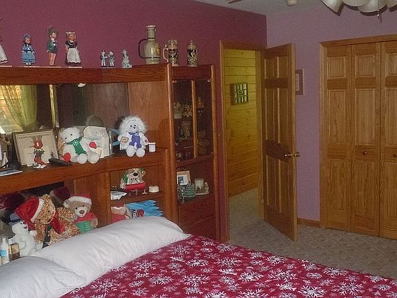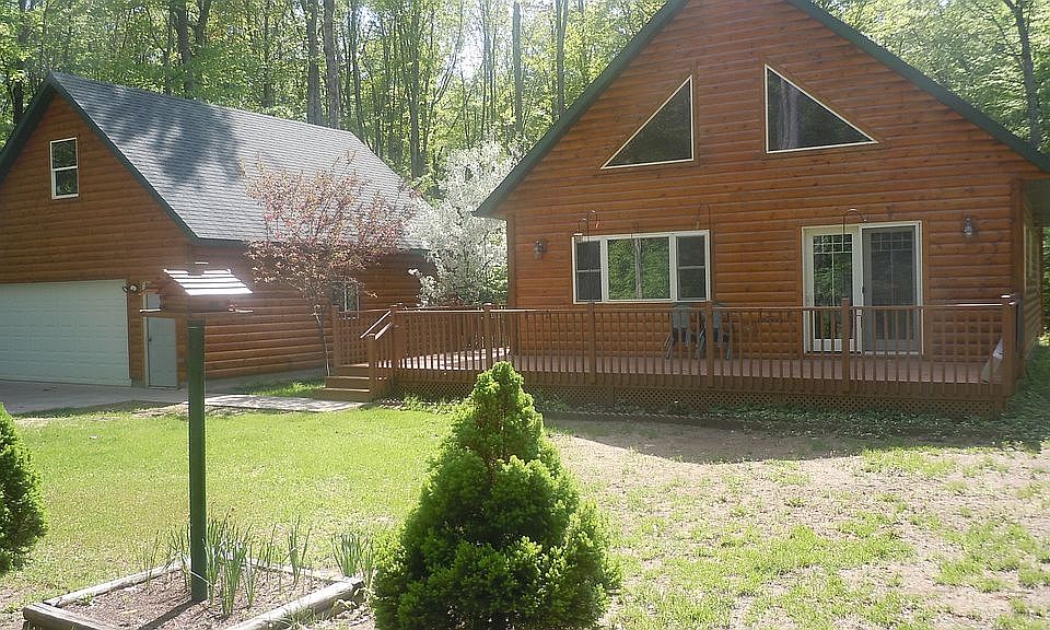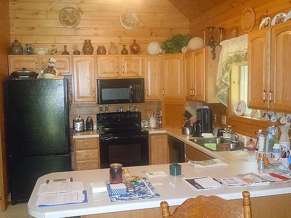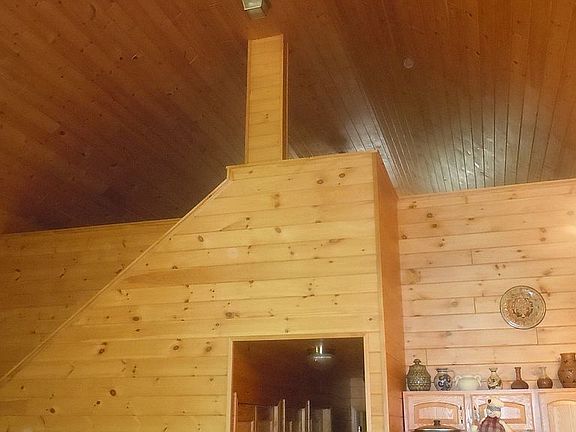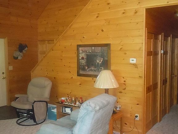 2 level with room for third bedroom on 2nd level. Open stairway. Large bedrooms on first floor. Central air conditioning. Rustic half log siding with large deck across front and one side.