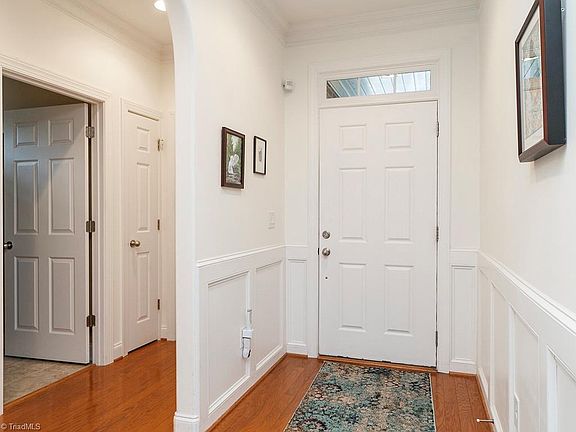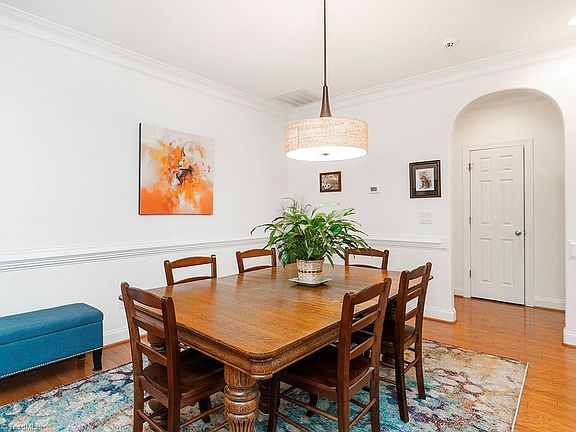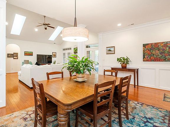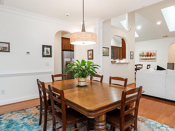Stunning Essex floor plan end unit in Woods of Grove Park nestled in the rear of the community. 3 bedroom 2 bath split floor plan. Formal dining and eat-in kitchen, naturally lit living room w/sky lights in vaulted ceiling & fireplace. Main living area accented w/hardwoods and moldings. Gourmet kitchen w/extended cabinets in breakfast area, SS appliances, granite, & tile back splash. Private primary w/updated bath w/walk in shower, walk in closet, dual vanity & water closet. Covered courtyard style patio w/small fenced in area. Convenient to i85/40, shopping and medical.