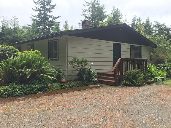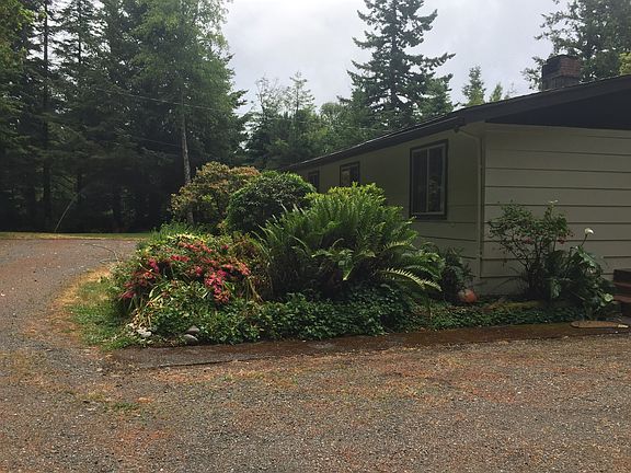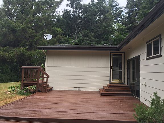 Private forested retreat and gardens on 1.75 acre hill with level grounds. Warm sunny exposure. Newer carpet, windows, paint, deck, heat pump and woodstove. Large family, living, dining and breezeway with utility rooms. Close to mountains, ocean, creek and town. Pella slider and sky lights.