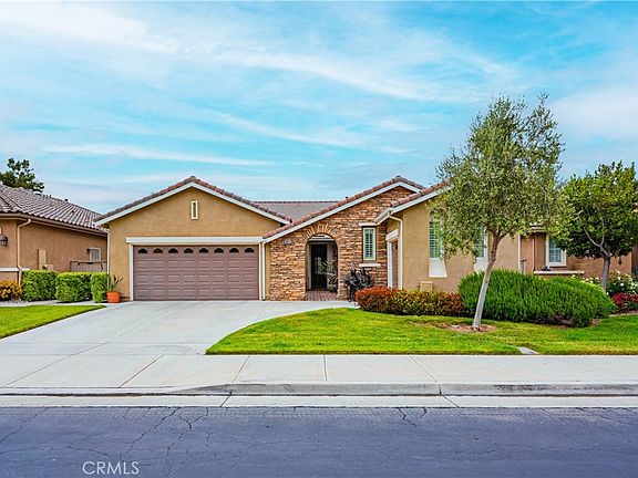 Beautiful single-level 2 bed, 2 bath + flexible bonus room ideal for office, den, hobby room or possible 3rd bedroom located on a quiet cul-de-sac in the highly desirable gated community of "The Oasis" in Menifee. This light and bright home features plantation shutters throughout, golf course views, and an open layout that includes a formal dining room and a wet bar—perfect for entertaining. The spacious kitchen opens to the family room, and the primary suite offers dual sinks, jetted tub and his and hers walk-in closets. Pride of ownership is evident! Enjoy the oversized 2-car garage PLUS a separate golf cart garage. Relax on the back patio and take in the peaceful golf course setting. HOA includes front yard maintenance and access to resort-style amenities—clubhouse, pool, spa, fitness center, tennis, and more. Conveniently located near shopping, dining, and medical facilities. This is a must-see home!