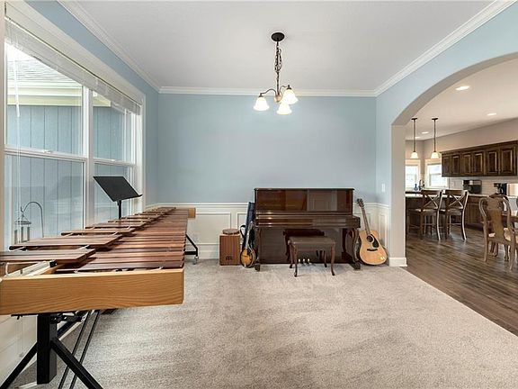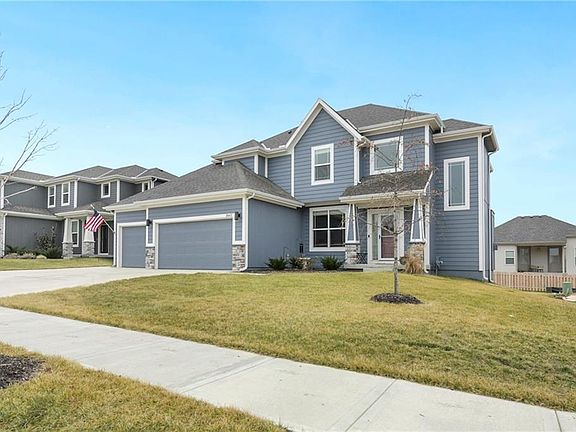 Why build when you can make this move-in ready home all yours right now? The Camden model features an open floor plan with an incredible kitchen, and extended island. Don't miss the oversized walk-in pantry and mudroom off the garage entrance. Lots of natural light shines throughout the home with beautiful engineered hardwoods, fireplace and formal dining room. The primary suite features a lighted tray ceiling, walk-in tile shower with bench, jetted tub and double vanity. For all you techies, there is a 9' antenna in the attic, wired for 90+ KC HDTV channels at all access points in the house, exterior connections for ethernet camera system, and upgraded ethernet wiring to CAT6A. Full basement is ready for your finishes featuring an egress window allowing for a 5th bedroom to be added, stubbed for a bath and has an extra 110V 20A connection. The 3-car garage includes 220V 50A connection for electric car charging station, backyard access, and an extra 110V 20A connection. Subdivision heated, saltwater pool opens the summer of 2023!