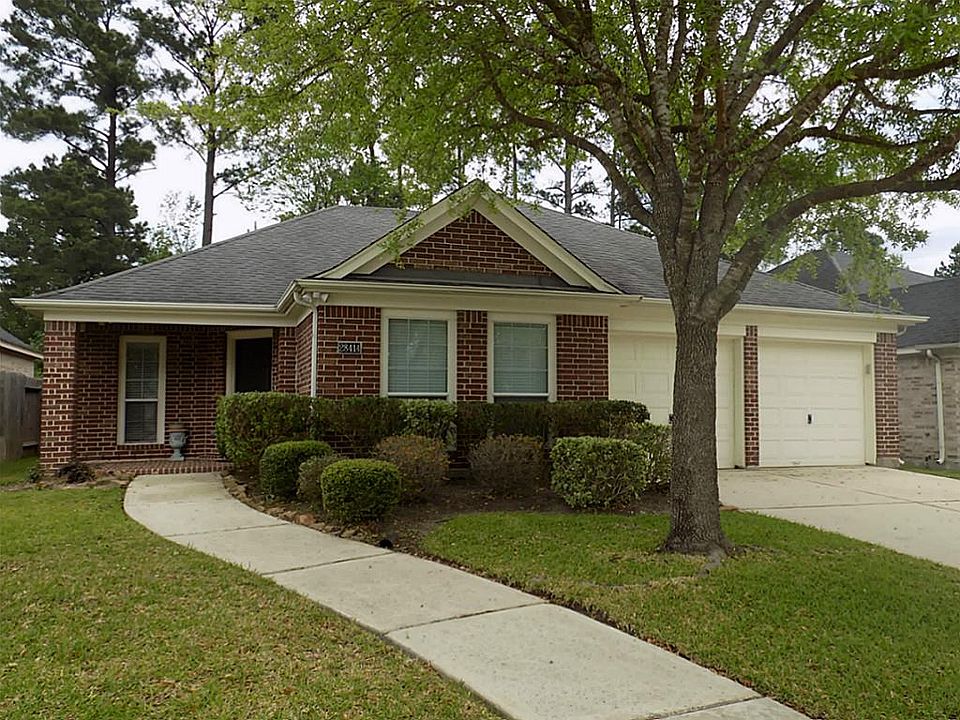 Enter this very quaint, Perry built, one-story thru the country style covered porch. Features include larger kitchen which opens to brkfst nook & huge family room with fireplace. Formal dining room, study with double French doors, Mstr bedroom suite with huge walk-in closet, oval tub, separate shower & double vanities; secondary bedrooms also have walk-in closets. Ideal commuting location with freeway access to The Woodlands for entertainment & shopping, Exxon Mobil World Hdqtrs or the airport.