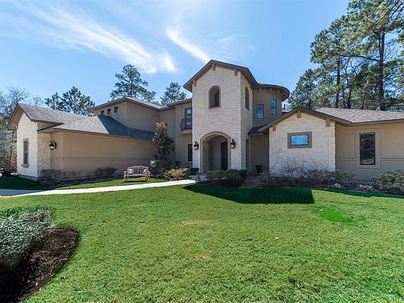 Sprawl out on a full acre in the perfect private setting! This custom estate boasts exquisite craftsmanship throughout! Beamed ceilings, crown moulding, upgraded lighting, custom cabinetry, gorgeous wood & travertine flooring. It offers 5 true bedrooms, all w/direct bathroom access (w/master and guest suite down). And wait to you see the master bath-WOW! Double sinks, double vanities, HUGE jacuzzi tub, linen closet, w/adjoining desk space room plus private workout room! Need a spot for your Peleton?! This home has it! The open floor plan is light and bright and perfect for entertaining guests. Grand kitchen w/endless granite countertops, storage galore, stainless appliances, custom panel fridge, pot filler, vegetable sink, gas stove top, & walk-in pantry! Enormous utility room with extended MUD space. Media w/stage + GMRM. Special touches: butler pantries, wine bars, & custom desks! Outdoor oasis w/huge covered patio, outdoor kitchen, living area, fireplace, & sparkling pool! MUST-SEE!