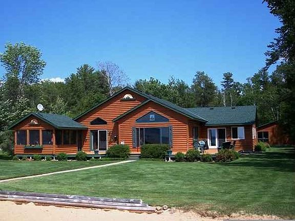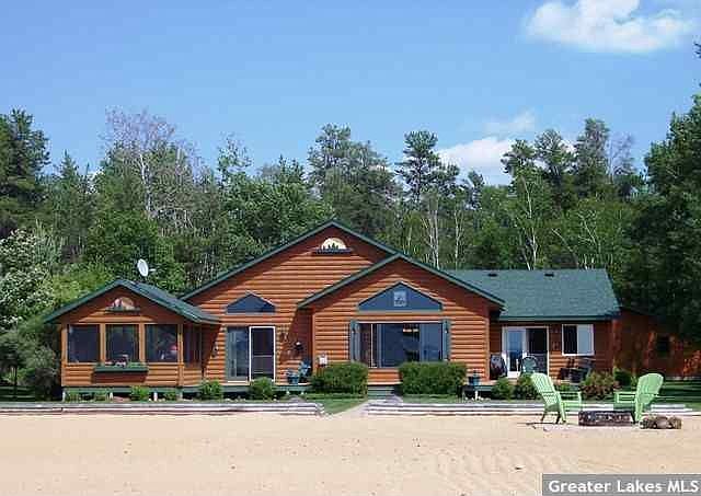 On the Eastern Shore of Pelican Lake is a home meticulously designed to accommodate all the family and perfect for grandchildren. This spacious layout is one-level, 2700 sf, features an open great room with stone fireplace, vaulted wood ceilings, log accents, walls of glass, lakeside master suite, family room, screen porch with hot tub, lots of lakeside decking ideal for BBQ's and entertaining, and the "Up North" flair. This is your chance to enjoy perfect level elevation, excellent sand beach, fabulous water views, breathtaking sunsets, plenty of room to play all your outdoor games, build sand castles, relax by the campfire, or simply lie in the sun. There is a 28' x 46' detached garage with a heated and insulated shop and wood burning fireplace. All of this being offered on nearly 4 acres of land at the end of the road for privacy. Pelican Lake is excellent fishing and extremely clean water for all your recreational fun.