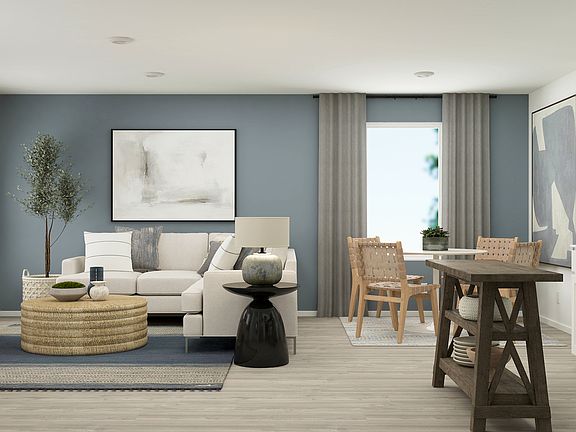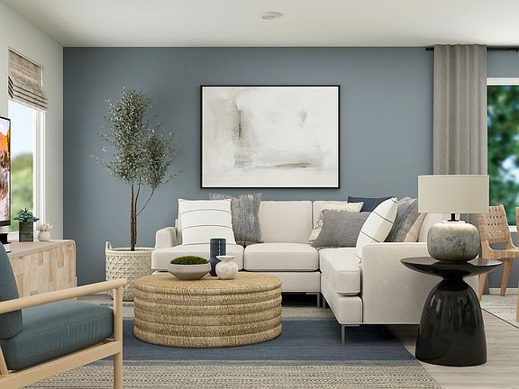 This Windrow single-level home showcases a spacious open floorplan shared between the kitchen, dining area and family room for easy entertaining during gatherings. An owner's suite enjoys a private location in the back of the home, complemented by an en-suite bathroom, walk-in closet and direct access to the backyard space. There are two secondary bedrooms. Prices and features may vary and are subject to change. Photos are for illustrative purposes only. Estimated COE July 2025.