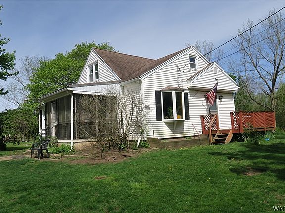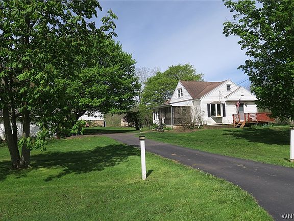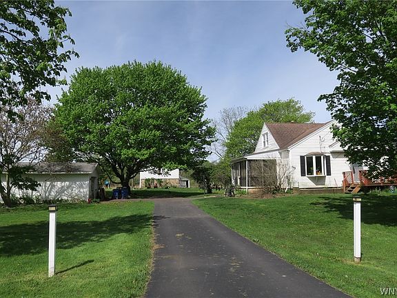 This 3 bedroom, 1 bath Cape Cod is situated on almost 10 acres of land that features a blacktop driveway with 2 detached garages, a metal pole barn and a new shed being used as a chicken coop. New metal roofs (2023) on the 3 bay garage and pole barn. The property also features Black Walnut trees, a Magnolia tree and a Weeping Cherry tree. The side porch has been enclosed with plastic and has a new metal roof (2024) on it. The 1st floor features kitchen, bath , formal dining, large bedroom, living room with a bay window. The 2nd floor has a bedroom with pass through door to the attic space that could be used for storage. There is another bedroom upstairs and an unfinished space/room that could be used for your needs. The dry basement is where you will find the laundry, the generator and the rest of the utilities. Don't miss this opportunity to make this home your own! Showings begin immediately. Friendly dog on the premises named Maverick.