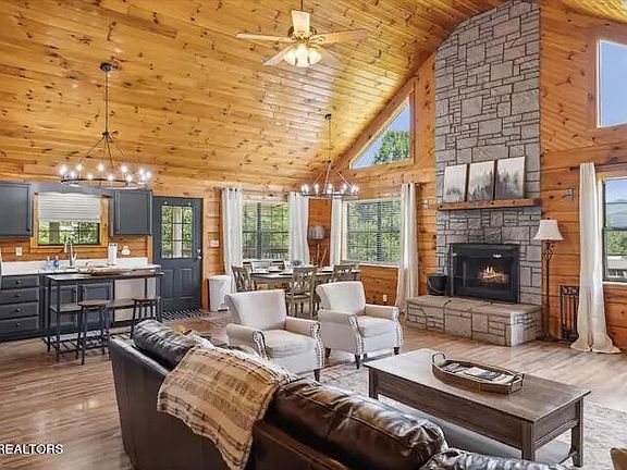 Gorgeous Short Term Rental Cabin Available in the Heart of the Smokies! 2BR/2BA. 65K in projected financials! This home has so much to offer and it fully rental ready, sleeping up to 8 guests! Charming log exterior gives your guests the cabin experience they want while providing all the modern creature comforts that make for a perfect getaway. Large open concept great room features lofted ceilings, huge picture windows, and floor-to-ceiling stone fireplace. Kitchen features stainless appliances, plenty of cabinet/storage space, and stunning marbled epoxy countertops. Two bedrooms on the main level, along with two full bathrooms. Upstairs, kids will love the loft area, the perfect place to hang out, play games, and have fun! Relax outside on the long covered front porch or in the hot tub on the back porch. Property is just over 1 acre and features a babbling creek and fire pit area, setting the perfect country ambience for your guests. This yard is perfect for creating your own vacation oasis like adding a pool, mini-golf course, pickle ball court, etc...the possibilities are endless! Located the in picturesque Wears Valley area, this home is less than half an hour away from all the attractions, shopping, restaurants, and more that Pigeon Forge and Gatlinburg has to offer. Hurry! This property is one you don't want to miss! Call us today for more information!
