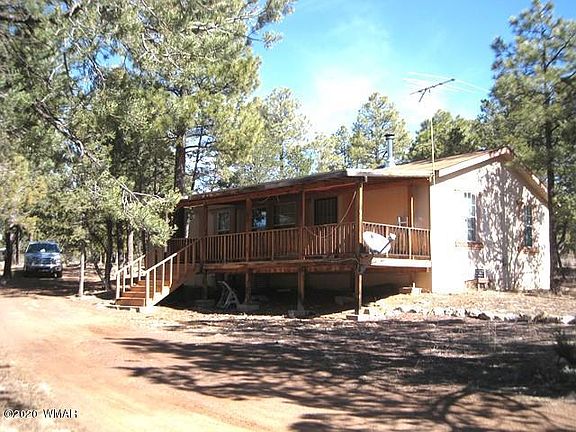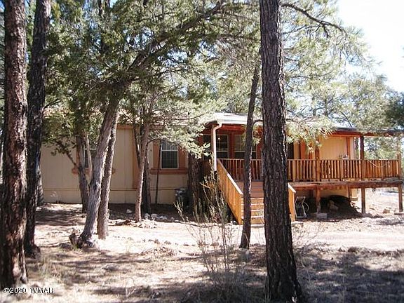 Well kept Dbl. wide manufactured home is 3 BR/2Ba with a split floor plan, and vaulted ceilings for that spacious feel. Central propane heat with a wood stove in the LR for winter comfort. Huge covered deck for enjoying the pine covered parcel totaling over 1 acre. Bunkhouse for the kids is an extra bonus and horses are allowed. Furnishings are negotiable.