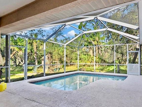 Welcome to this Windemere original home on an oversized double lot in North Port! This 4BR/2BA pool home features a bright open floor plan with formal living and dining rooms, a family room with built-in niche, and a kitchen with raised breakfast bar, nook, and ample cabinetry. The master suite offers dual closets, pool access, soaking tub, and separate shower. No HOA, no CDD, not in a flood zone—just minutes to shopping, dining, and Gulf beaches.