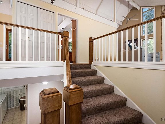 A Pacific Northwest Gem in the SW Hills of Eugene! This home is beautifully nestled among the tall trees and gorgeous landscaping. New hardwood floors, vaulted ceilings,tall windows and skylights. Main level has Xlarge Primary Bedroom, walk-in closet and bath. Additional bedroom and full bath on main level plus kitchen and dining room. Downstairs family room with fireplace, laundry, two bedrooms and third full bath. Scenic outside provides private, wooded setting, gazebo, decks and balconies!