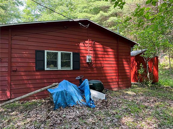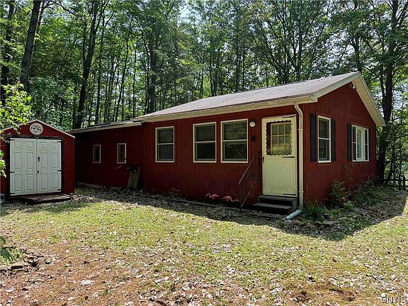 This cabin includes all amenities and is located on 4.2 acres in Clarksville NY.