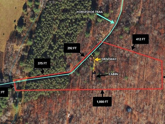 The cabin is surrounded by trees for great privacy. The terrain of the land is mostly level with some rolling hills. The cabin has 960 sq. ft. with an open floor plan which includes a large living room area, dining room and kitchen combo, 1 bedroom, and 1 full bathroom. There is plenty of room for this to be a relaxing family retreat. Septic, well and electric are all present on site. The spacious lawn outside around the cabin is perfect for kids and pets. The property has 667 feet of road frontage off Horseshoe Trail. There is an open lot prior to reaching the cabin which could be used to build another cabin, or to park a camper. This property is a great escape from the weekly routine, and is a great spot to bring your family and enjoy making memories. Surface rights convey.