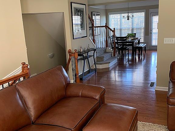 3-level townhome. The first level has two car garage, a finished basement with a bedroom--closet--wood floor--and a big window that walks out to a covered patio. The basement has two additional closets and a nice size full bath. The stairs leading from the basement to the 2nd level have carpet. The 2nd level has a large living room with french doors, a gas fireplace, and 4 ceiling speakers. A wide foyer leads from the living room to the kitchen. Off the foyer there's a hallway that leads to a closet and a nice size 1/2 bath. The kitchen has a large breakfast area and an island. There are plenty of windows and a door that leads to a nice size deck that faces the woods. The 2nd level has wood floors. The stairs leading up to the 3rd level have carpet. The hallway between the two upstairs bedrooms has wood floors. The washer and dryer room is off the hallway. There are two nice size carpeted bedrooms with ceiling fans and nice size walk-in closets. Plenty of big windows!