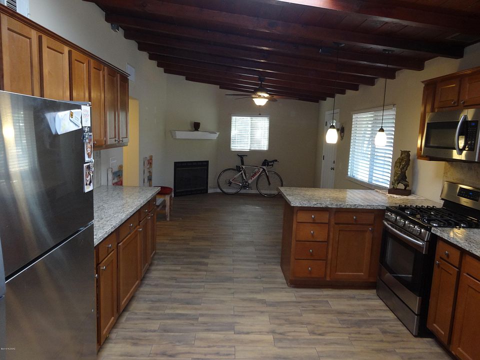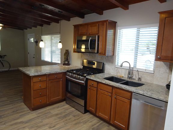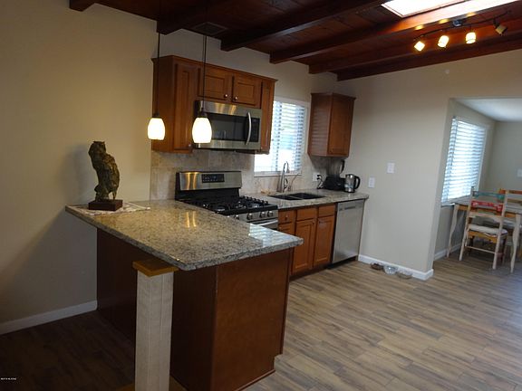 Beautiful Complete remodel in a great central location. Attention to detail and care went into this Gorgeous home. High exposed wood ceilings and gas fireplace in open Concept living room kitchen. All new cabinets, Granite counter tops and tile backsplash with SS appliances and Gas Range. New flooring with Ceramic Faux wood finish, new carpet in three bedrooms. Completely redone bathrooms with Ceramic tile and Mosaic glass finish. New cabinets. All new doors. Energy efficient Dual pane windows, new water heater. Freshly painted inside and out. New Electric Panel. New owned $10,000 solar panel system. Super low electric bills and no lease. Enjoy the Mountain views as you barbeque in your large back yard. Mature vegetation and Large Gazebo for shade. This home is move in ready. Don't miss this one.