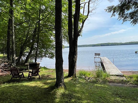 2 bedroom 2 bath cabin that’s just cute as can be on the most beautiful park like property with 100’ of gorgeous sand frontage on the Turtle Flambeau Flowage! This beach begs for swimmers and all kinds of summer fun! Inside you’ll find a towering cathedral ceiling, beautiful knotty pine, waterfront kitchen/dining area and very spacious loft! There is a partial basement that is plumbed for a 3rd bath and laundry area with new washer. A large storage shed/workshop has electric and a full 2nd story play room! This property is move in ready and includes everything you see, furniture, dishes, lamps, décor, 1000 gal LP tank, aluminum roll in pier and so more!! Grab your coffee and cozy up on the deck while you watch the sunrise above the lake! This is a must see!