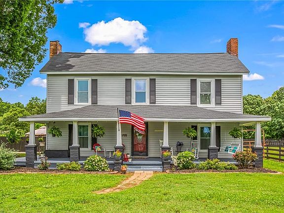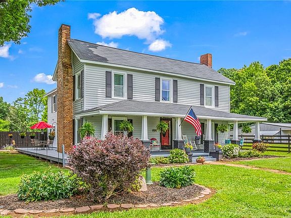 Unique opportunity in the heart of horse country! 8+/- SERENE ACRES located on a no through traffic road! SPACIOUS REMODELED home loaded w/ CHARACTER and CHARM. Living room has bead board walls, wood floors, & a stone fireplace w/pellet stove. Enjoy gatherings in the sizeable dining room. UPDATED KITCHEN has tile backsplash, glass front cabinets, built-in shelves, stainless steel appliances (2024 range), and huge pantry! Main level primary suite boosting wood beamed ceiling, fireplace, and incredible bath w/barn door, soaking tub, separate shower, water closet & double sink vanity! Upstairs are 3 additional bedrooms w/NEW CARPET (2024) Replacement windows and recent interior paint. Enjoy the outdoors on the wraparound porch watching your animals in the fenced pasture. 5 stall barn w/new roof in 2024. GREAT BACKYARD for entertaining! Socialize by the firepit, take a dip in the pool, & go fish at the pond! Potential for subdividing. LOW COUNTY TAXES and NO HOA so bring your farm animals!