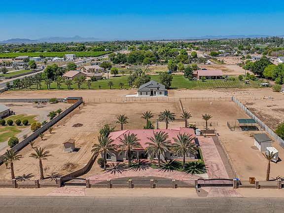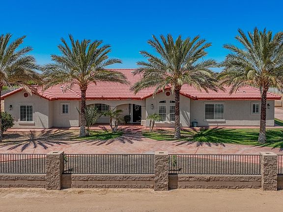 This beautiful custom home in Donley Estates offers four bedrooms, three bathrooms, a split floor plan, vaulted ceilings, and a spacious kitchen with ample cabinet storage—plus a separate formal dining room with a touch of farmhouse charm. The main living area features a sleek built-in entertainment center with plenty of storage below. Whether you’re displaying a TV or organizing your favorite reads, it’s a stylish and functional focal point. One standout space? The primary bathroom suite. With deep green walls, a walk-in shower, and double sinks, it gives off a moody, spa-like energy that’s both bold and calming. Honestly, I’d be turning down the lights and lighting a candle—every night. Step outside, and the setup is ready to work for you: a 90’x150’ arena (perfect for riding, training, or turnout), multiple stalls, an oversized garage with built-in storage, a newly installed storage shed, side parking, and a half-moon driveway with gated access at both ends. The backyard is enclosed by a solid block wall, with additional fencing and perimeter walls offering both privacy and flexibility. Female date palm trees + irrigation rights. Zoned SR-2, this property allows for a semi-rural lifestyle while still being close to town. Whether you're raising animals, starting a home garden, or just enjoying the open space, the remaining back portion of the lot is a blank canvas for your vision. Early mornings hit different here—coffee in hand, feeding the chickens or horses, soaking in the quiet. For horse lovers, there’s no need to rent sheds or board elsewhere—this property is fully equipped and ready to welcome you home. Schedule your private showing today.