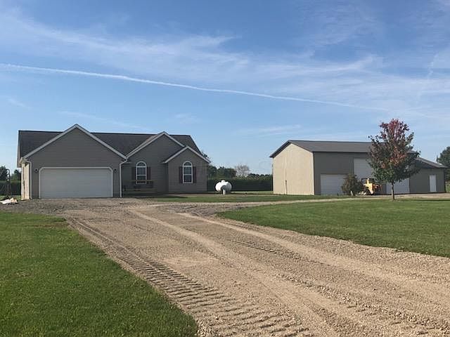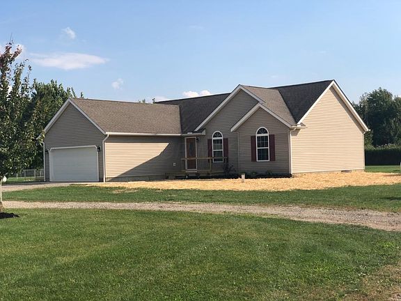 Beautiful ranch style home with full, poured wall, unfinished basement! Three bedroom and two bath home with open floor plan, sitting on just over 2 acres. Interior has been completely remodeled from floor to ceiling in neutral tones...this home requires nothing additional in order to move in! Home has 2 car attached garage, but also has 3 car detached garage (with concrete floors, electric and water) that could be used for a business or for extra cars, campers or toys. (Two over sized doors on the extra garage allow entrance for larger items). (Agent related to seller)