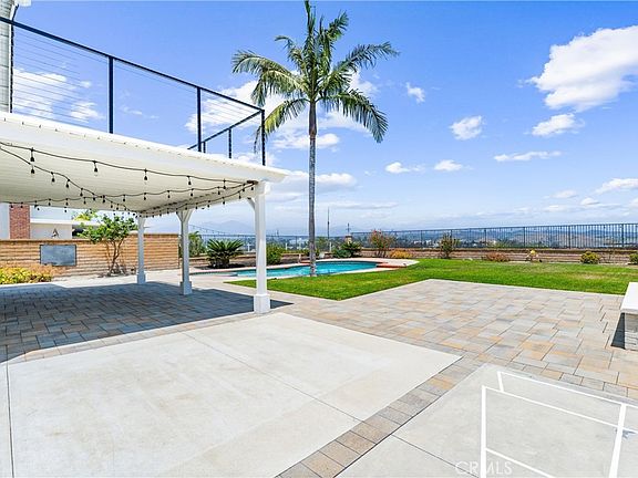 It's all about the yard here. This private yard features a sparking pool to cool yourself during those lazy summer days, or an evening dip in the Spa to relax and take in the City lights and dramatic Moon sights. A large built-in Fireplace adds warmth and a special gathering area in the yard. A spacious solid covered Patio area for entertaining- a great spot for alfresco dining, or sitting and enjoying those "Games" with friends and family outside. A good sized grass area for the kids and Pets to play! oh yes... two shuffleboard courts.