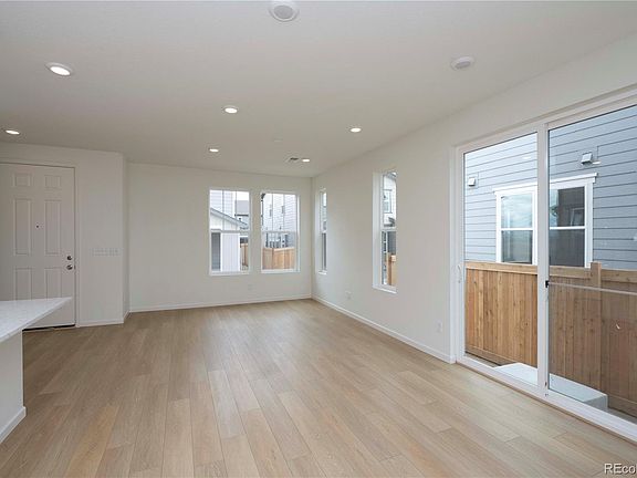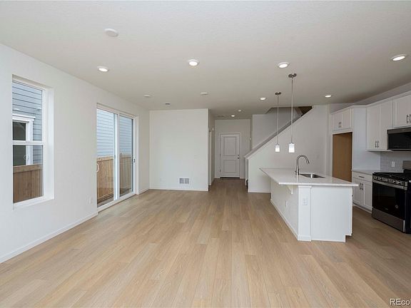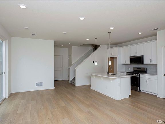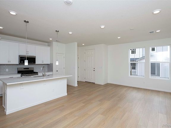 Master-planned community four miles south of DIA corridor. Low Maintenance paired homes with private side yards and full size driveways. Commuter friendly; near I-70 and E-470. Short drive to local shopping, dining, and entertainment, including Southlands Shopping Center and The Gaylord of the Rockies. This beautifully upgraded home will complete in early 2023. It has 3 bedrooms, 2.5 bath, private side yard, and attached 2 car garage with full size driveways. It features an open friendly kitchen, and oversized great room that is perfect for family and friends gatherings! Main level vinyl plank flooring, quartz kitchen counter tops, white cabinets, standing glass shower, gas range, and much more! The Metro district covers public common area maintenance, alley maintenance, and alley snow removal. The HOA covers front yard maintenance. The homeowner is responsible for leader walks and driveways, and all side yard maintenance. The Listing Team represents builder/seller as a Transaction Broker.