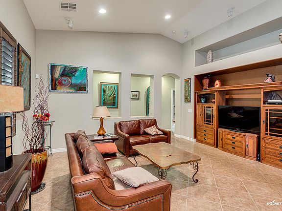 Reduced! Well Maintained Home with Open Floor Plan, Plantation Shutters, Library or Formal Dining Room, Den with double doors, Dramatic Vaulted Ceilings, Whirpool Gold Kitchen Appliances, Stainless Steel Range and Oven, Stone kitchen countertops with Raised Panel Kitchen Cabinets with Crown Molding. Relaxing Desert Back Yard with Pavers.