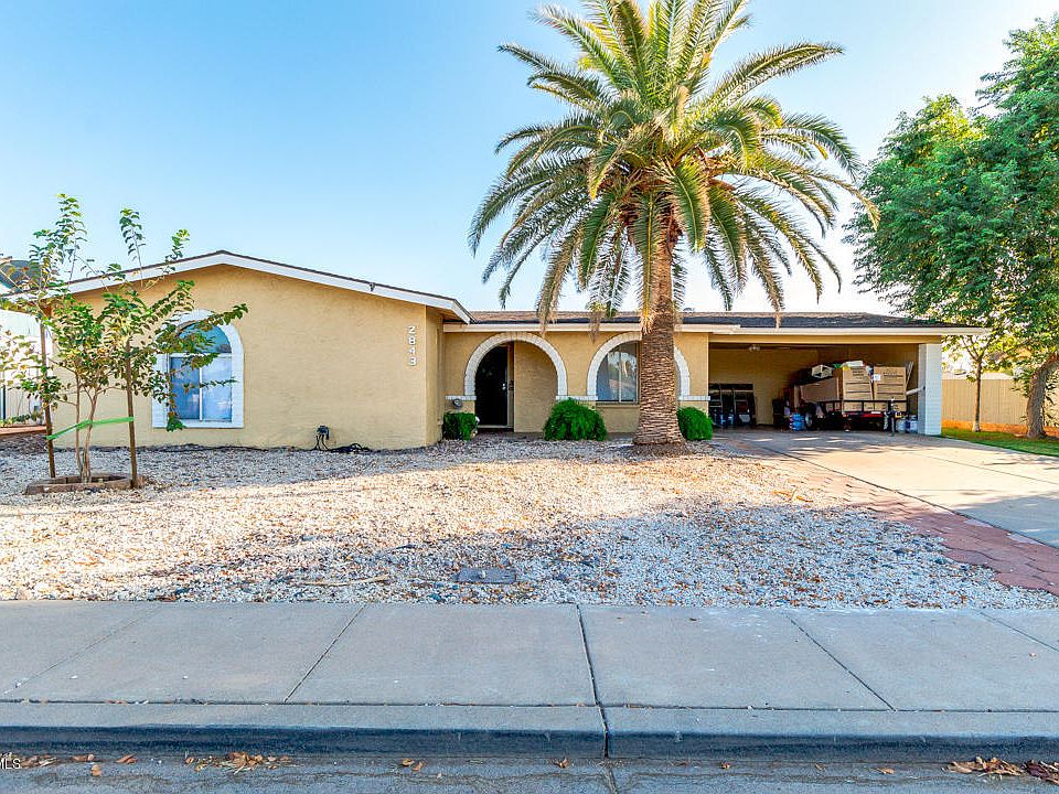 This beautifully landscaped home greets you with a tiled entry that seems to amplify the abundance of natural light through out. The living room has exposed wood beams and an old style adobe fire place. The kitchen is cozy with a a breakfast nook that overlooks the pool. The master bedroom is spacious and warm with beautiful wood floors. The backyard boasts a large pool, grass area and covered patio. Come and enjoy!