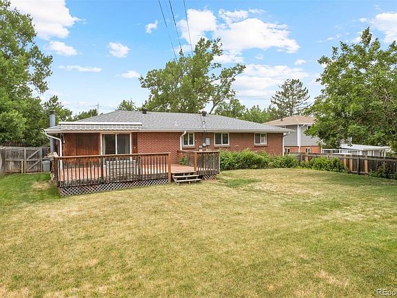 This brick ranch home is available at a very reasonable price in Dreamhouse Acres. The lot is flat with over 10,000 square feet and pleasant landscaping near Goodson Rec Center, the Highline Canal trail, Trader Joes, and Streets of Southglenn Mall. Three bedrooms are on the main level including a primary suite. There is also a generously sized family room and kitchen for entertaining guests. The carpet has been pulled to reveal preserved hardwood flooring. The basement is finished with an additional rec room, non-conforming bedroom, and ¾ bath. This is a great opportunity to put your finishing touches on this home to make it your own! This home has great bones and has been loved by one family for decades.