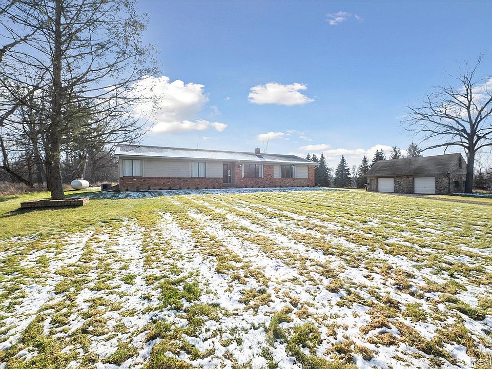 Amazing ranch on 10 acres awaits you! This home features a light filled open floor plan, three large bedrooms, and a large family room for entertaining. Updated flooring throughout. All three bedrooms have large closets and lots of natural light. You will love the private office space. There is a two car detached garage and an amazing pole barn with cement floor, water and electricity. Enjoy the beautiful acreage with abundant wildlife and privacy.
