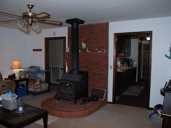 1987 built ranch style home with a double garage and three barns on the property. 50 acres of land. Flowing creek on back of property. Property has lots of fenced pasture for raising livestock. Many pecan baring trees on property also.