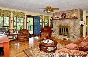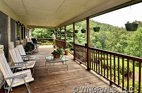 Charm abounds in this bright meticulously maintained home with spacious open floor plan. Features include wood/tile floors, spacious master suite, inviting open kitchen great for entertaining, stone fireplace, wonderful rocking chair covered front porch to enjoy the mountain views and beautiful yard, lots of storage, full basement, large oversized 2-car garage, in ground pool, parking on main level.Home is on 4.94 acres and 10min to Waynesville