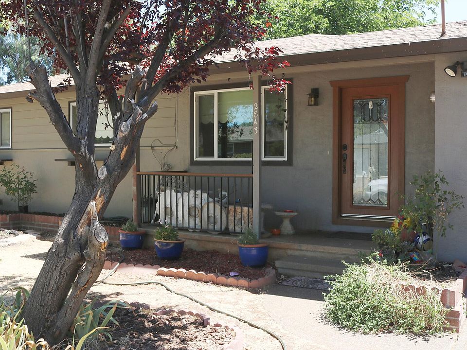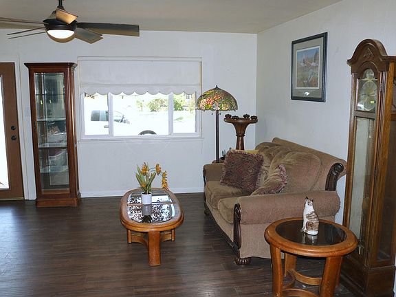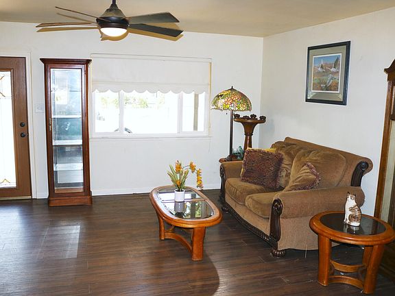 Renovated 3/2 with custom entry door, updated kitchen and bathrooms, granite slab , black cabinets, kitchen counters, gourmet 5 burner gas range, stainless appliances, cabinets with soft shut rollers, laminate flooring, vinyl dual pane windows and rear slider, Safe Step Walk in senior jetted tub in hallway, on demand hot water, LED lighting, inside laundry and updated Central heat and air unit. Enjoy a huge fully fenced backyard with garden area, shed and access off alley to rear. Attached 1 car garage with laundry room to the back is convenient just off kitchen. Shown by appointment so seller can vacate. Please do not disturb occupant