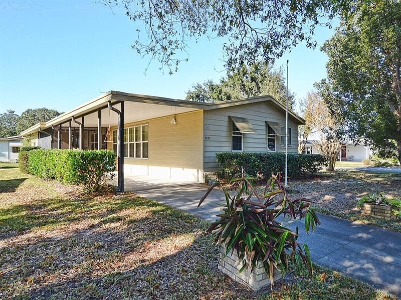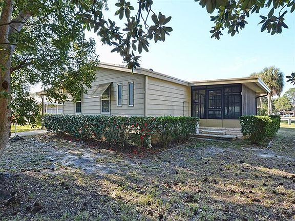 WALL OF WINDOWS make the living/dining area light and bright. Sliding doors open to Screened lanai off the dining to enjoy the evenings. Also, this 3 bedroom, 2 bath split floor plan offers a family room with decorative fireplace. From the large carport you enter the 2nd Lanai. The HVAC is 2 years old, roof replaced 2014 and the home has replacement windows.