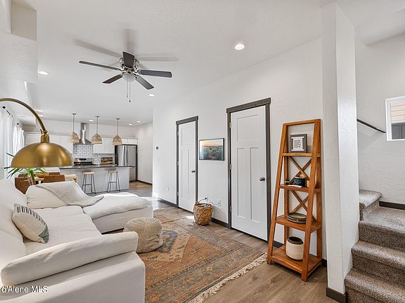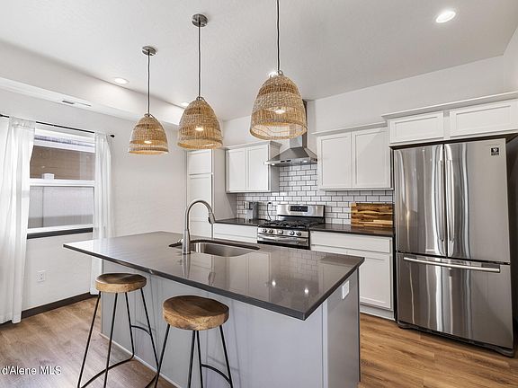 Over 1400 square feet in this Modern and almost new Home with 3 Bedrooms and 2.5 Bathrooms, and nice upgrades throughout. It is a must see! Open floor plan with beautiful lighting from living room to kitchen space. Kitchen includes quartz countertops, an island, breakfast-bar, pantry, refrigerator, microwave, gas range/oven and dishwasher. Master-suite exhibits a bathroom with double vanity, walk-in closet and office nook. Exterior includes paved parking, attached garage, fully fenced backyard and open back patio with outlet for ambient lighting such as Christmas lights and plumbed for gas. Just minutes from downtown Coeur d'Alene.