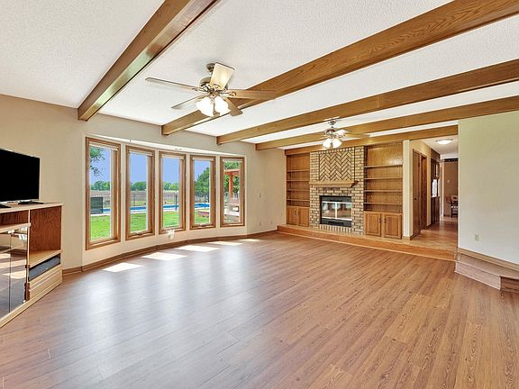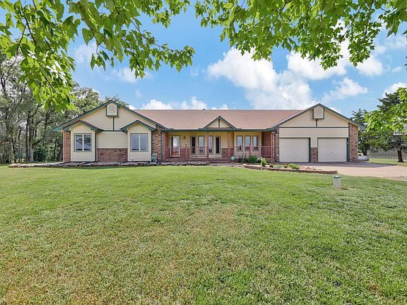 Welcome Home to Colwich! Immerse yourself in the breathtaking beauty of nature's daily masterpiece with this idyllic retreat. Nestled amidst rolling fields, this charming property offers an unparalleled vantage point for capturing the mesmerizing hues of the setting sun. As daylight fades, watch in awe as the sky transforms into a canvas of fiery oranges, soft pinks, and golden hues, casting a warm glow over the expansive landscape. Your own private oasis within this property nestled on 5 acres of scenic countryside. Located just minutes from Goddard or West, Wichita this meticulously maintained home offers the perfect blend of tranquility and convenience. As you gracefully pull into the driveway of this inviting residence you will be welcomed with the epitome of comfort and convenience. Step out of your vehicle and feel the warmth of familiarity wash over you as you embark on the next chapter of relaxation and cherished moments in the comfort of your own abode. Whether returning from a bustling day's work or an adventure-filled outing, pulling into this driveway marks the beginning of a tranquil sanctuary where memories are made and dreams find their place to flourish. Indulge in the epitome of family living with this sprawling basement where an expansive family room has been designed for making memories. Step into a world of spaciousness and warmth as you enter this grand sanctuary, meticulously crafted for relaxation, entertainment, and cherished gatherings. Stretching across a vast expanse, the massive family room exudes timeless charm with its thoughtful layout. This basement invites you to unwind and connect with loved ones, whether you're lounging for movie nights, engaging in lively conversations, or simply enjoying quiet moments of reflection. With room to spare for additional amenities such as a gaming area, home theater setup, or even a cozy fireplace nook, the possibilities for customization are endless. Beyond its impressive size, the basement also offers a wet bar, eating bar, huge storage area with an additional half bathroom for ease while entertaining or winding down. Experience the ultimate blend of leisure and functionality with this exceptional property boasting a spacious 30x50 Morton outbuilding, an inviting in-ground pool, and a charming pool house. Nestled within manicured grounds, this haven offers. The expansive outbuilding provides ample space for all your storage needs, from vehicles and equipment to recreational gear and workshop tools. With its generous dimensions, it offers versatility for hobbyists, entrepreneurs, or anyone seeking a multifunctional space to bring their visions to life. Step outside and into a world of leisure as you discover the shimmering oasis of the in-ground pool. Surrounded by lush greenery and adorned with lounge chairs, this private retreat beckons for lazy afternoons spent basking in the sun or refreshing swims under the open sky. Adjacent to the pool, a quaint pool house awaits, offering a charming escape for guests or a convenient spot to retreat for refreshments and relaxation. Complete with all the essentials, including a kitchen and full bathroom, it's the perfect complement to your outdoor gatherings and summertime soirées. Whether you're seeking a sanctuary for relaxation, a space to pursue your passions, or an entertainer's dream, this property offers the perfect blend of luxury and practicality to suit your lifestyle needs. Embrace the epitome of leisure and functionality with this exquisite combination of outbuilding, pool, and pool house – a retreat that promises to elevate every aspect of your daily livingness opportunities for relaxation, recreation, and storage.