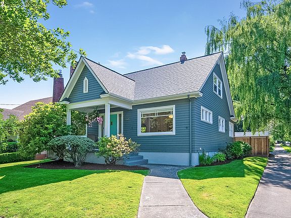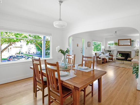Picturesque bungalow nestled in the heart of Historic Irvington. Located on a corner lot with a detached garage and fenced-in yard, this home has much to offer. The open-plan living and dining room feature a wood-burning fireplace and hardwood floors. The remodeled kitchen is connected to a sunny eat-in kitchen nook. The two bedrooms and a bathroom on the main are well proportioned and the large master suite has a walk-in closet, storage, & flex space. The large basement is full of potential.