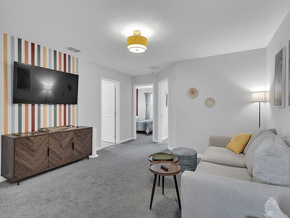 Fully furnished bedroom with work desk, portable fan. Full size bed. Patio with outdoor furniture. Parking on driveway or in garage. Nice, clean, quiet and new community. Close to the 417 and Lake Nona VA hospital. Community has a pool. Large smart tv in both living room areas. Washer and Dryer provided.