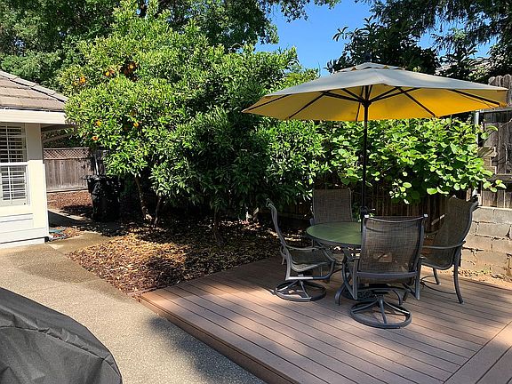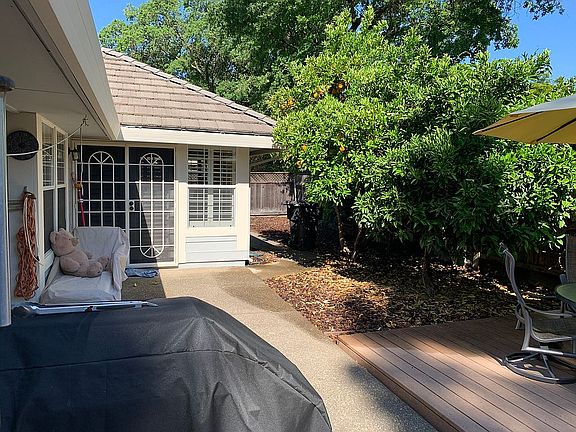 New furnace/AC (2003), concrete roof (2004), remodeled gas kitchen. There is a wood-burning fireplace in the living room (unused for more than two-years). 2-car garage with enameled floor finished with superior cabinets, newly paved gated street, very quiet. 4 Citrus trees, fig tree, kiwi vines, vegetable garden, in a low maintenance, fenced yard at the end of a very private cul-de-sac, one of the prettiest, gated streets in Sacramento. Wood shutters throughout. Berber carpets and tiled floors. 2 Sheds near garden area. Trex deck. We see the stars, hear trains in the distance, and occasionally have raccoon and opossum visitors. Zestimate based on a foreclosed sale of a poorly maintained house (Now restored to health and beauty!) Neighborhood Description Gardeners take care of front lawn. Beautiful street with mature trees and great neighbors. Tennis courts and park within 200 metres. Fire station 2 blocks away. Gated community. Walking distance to coffee shops, restaurants, and a new 24-Hour Fitness club. All utilities are underground!