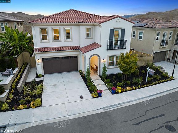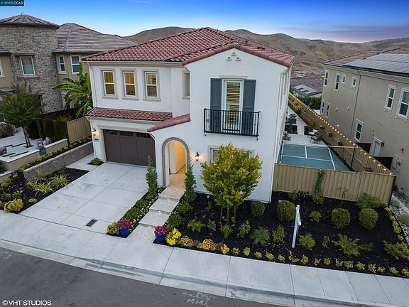 Nestled in the rolling hills of Dublin, this luxurious home on a premium view lot, in coveted Tassajara Hills feels like resort living. A home where elegance meets functionality. Grand foyer w/soaring ceilings and curved staircase. The main level has a spacious bed and full bath, perfect for in-laws/multigenerational living. Downstairs office plus powder bath. Formal dining room for elegant holiday dinners. Open floor plan with a spacious great room w/ gourmet kitchen featuring quartz counters, SS appliances, center island, pantry and butler's pantry, open to multiple dining areas and family room with fireplace. Fabulous outdoor access from family room and kitchen to the California Sun Room and backyard. Luxurious upstairs primary suite w/retreat opens to a balcony to enjoy your chai/coffee along with stunning view of the hills, walk in closet and spa like bath with oversized shower and soaking tub. Large loft for recreational activities. Three secondary beds with attached baths and large laundry room complete the upstairs. Enjoy outdoor fun, fabulous sunsets and views from the maintenance free backyard with tiled patio, fountain, BBQ station, fruit trees and sports court. Added features include custom light fixtures, fully paid SOLAR. Located near BART, Fwy, Great schools.