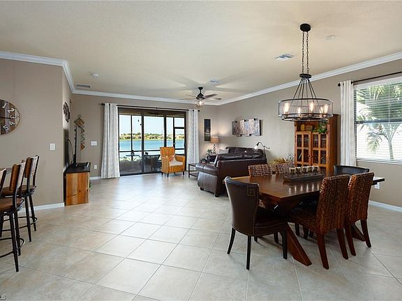 Over $30.000 in Upgrades. Beautiful,spacious and well appointed 4 bedroom 3 full bath home with 2 car garage, on a large lake. Built in 2014. Island kitchen with granite counter-tops, and new top of the line stainless steel appliances throughout. Ship lap applied to the front of the kitchen island. Completely tiled throughout with new wood look like tile floors in all bedrooms and closets. High ceilings with crown molding in every room. Newly painted inside with warm earth tones. New fans and lighting fixtures. Brick paver screened Lanai's in front and back. New slider to the lanai and 3 new windows have been replaced with Hurricane Impact Glass. Barrel tile roof and brick paver drive and walkway. Owner has added gutters, river rock and palm trees in front and around the perimeter of this home..You will feel like you are on vacation as you sit on the Lanai, sipping wine, looking out on the beautiful large lake and wildlife. Within minutes of 3 shopping centers and Fort Myers International Airport. After touring this home, I am sure that you will agree with me, that you would be proud to call this beautiful home your own.