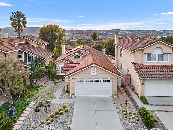 SINGLE-LEVEL home, with a VIEW... This remodeled TURNKEY residence is ready for you. It sits on a single-loaded street with no homes directly behind, offering spectacular sunsets and a beautiful city lights view from the backyard, main living area, and primary bedroom. The kitchen is remodeled and features a cute breakfast nook which gets perfect morning sun. From the main living area you can see the great view while seated at the dining room or on the couch. Two additional bedrooms share a hallway bathroom. There is direct access to the 2-car garage with plenty of storage. Completing the interior is a spacious primary bedroom with remodeled en-suite bathroom. The low-maintenance front and back yards are both beautiful and easy to maintain. The home's plumbing was redone in 2017, and solar was installed in 2021. The home comes with smart systems for the thermostat, video security, and irrigation. Pride of ownership is evident at every turn in this charming home. Great location with convenient access to the 5 freeway, 73 toll road, Laguna Niguel Regional Park, and Aliso and Wood Canyons Wilderness Park. Less than 5-minute drive to Costco, Whole Foods, Home Depot, Walmart and Sprouts. Less than 15-minute drive to the world-famous beaches of Dana Point and Laguna. The home includes membership to The Club at Rancho Niguel, a wonderland with 2 pools, 2 hot tubs, 7 tennis courts, 6 pickleball courts, a basketball court, 2 volleyball courts, 2 racquetball courts, a play structure, a clubhouse, grassy field and a gym. This home won't last long. Schedule your tour today!