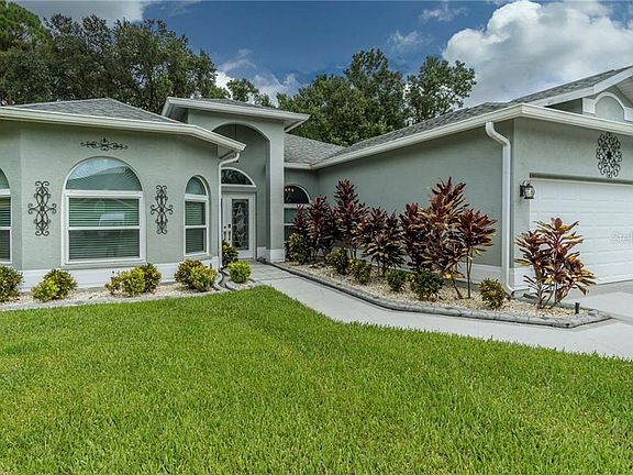 You will absolutely fall in love the moment you approach this 3/2/2 PLUS pool/den home in Meadow Pointe. There are upgrades galore from the moment you press the hardwired Ring Door Bell (installed 2020), double glass front doors( installed 2017), and Schlage keyless entry. As you enter the home on the left is a spacious office/den with plenty of light. The kitchen has beautiful cabinetry, granite countertops, stainless steel sink, blck stainless steel appliances, built in seating bench with storage underneath, and upgraded fixtures throughout. You will notice crown molding throughout the home. Also beautiful wood tile in the entryway , throughout the family room and in the master bedroom. As you enter the family room, there are 2 large sky lights overhead, bringing in plenty of natural light. Plus, warm up on a cool winter night with a wood burning fireplace. There are 2 sets of French doors leading out on to the Lanai and large pool area. As you enter the Master Bedroom, you will notice its spaciousness, along with large bathroom, dual sinks, separate walk-in shower, separate garden tub, and 2 walk-in closets. In addition, The Master Bedroom has a sliding glass door leading out to the pool area. On the opposite side of the house youll find the 2 secondary bedrooms with another bathroom. In the larger of the 2 bedrooms there is built in shelving and additional storage above the closets. In the other bedroom there is a built-in closet organization system , built-in shelving system and additional storage above the closets. Walk out into the pool area and you feel like you are at a resort. A brand new custom built outdoor kitchen (March 2020) with custom monkey pod live edge slab, pit boss Kamodo Ceramic Grill, and glass door beverage cooler. You are sure to cool off with 3 fans out on the lanai, 2 of which were installed in (2016). The pool deck has special Gorilla Flooring throughout (2017). In addition, you will find the same great gorilla flooring (installed 2017) in the garage. Beautiful pool cage with special screening (2016) and solar panels (2016) to heat the pool at your optimum temperature at anytime. Outside you will notice beautiful concrete curbing with a stamped concrete driveway and walkway (2017) along with new gutters ( 2017) and beautiful landscaping. So many more upgrades throughout.. INSTALLED IN 2016 - 14 SEER A/C with new vents, air return, duct work, and added insulation; - Dimensional shingle roof; - 40 Gallon Water heater; - Insulated garage door; - Culligan water drinking system conditioner w/monitor was installed; - Pentair pool pump was installed; - Ryobi Garage Door Opener with multiple utility attachments; - Schlage Keyless entry for side garage door; - 2016/17 INSTALLED High efficiency toilets in both bathrooms. INSTALLED IN 2017: (Triple Pane non-impact ultra energy efficient insignia 130 MPH rated windows throughout the home. Solar attic fan. installed New mailbox. -a second set of laundry hook-up are in the pantry. This home is located in the front section of Meadow Pointe with NO HOA Fees and easy access in and out of the community. You will feel like youre in a brand new home. Plus so many high efficiency additions for the lowest possible utility bills