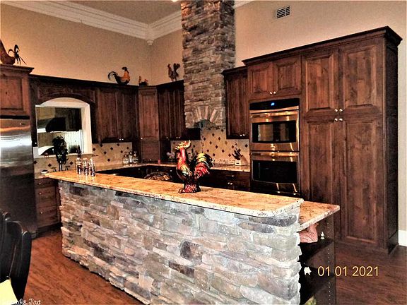 UNIQUE! 5,964 sq ft living area in home and 1,040 sq ft apartment in the attached shop. Kitchen with stone accents, fireplace, induction range, double oven with warmer, roll out shelves, 2 pantries, formal dining, formal living room, den with built-ins, Fireplace, 3rd living area with kitchenette, 3 bedrooms each have their own bath, walk-ins. The master suite has a seating & TV area, with joining bath with 2 whirlpool tubs (1 walk-in), dressing area. Office has 1/2 bath & sauna. Agent See Conf remarks