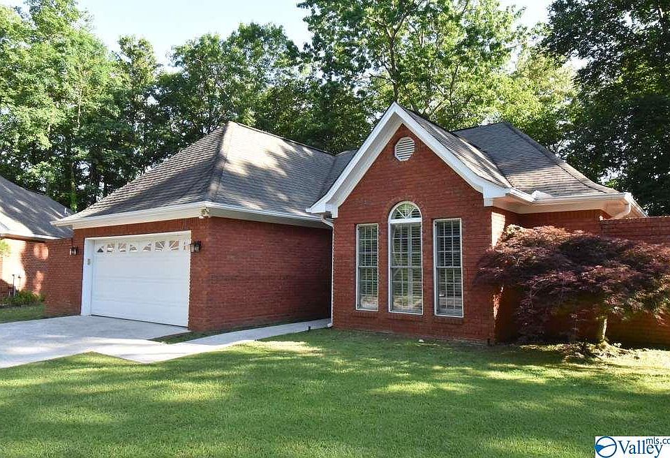 A ready to move in, custom built 3 BR/2 BA Patio Home in a lovely neighborhood on a quiet cul de sac. Close to Lake Guntersville Schools and shopping. Full brick, 2 car attached garage, large deck, seasonal lake view. Hardwood flooring, ceramic tile, crown molding, wood burning fire place, built in bookcase in family room. All appliances remain including washer and dryer, original to home.