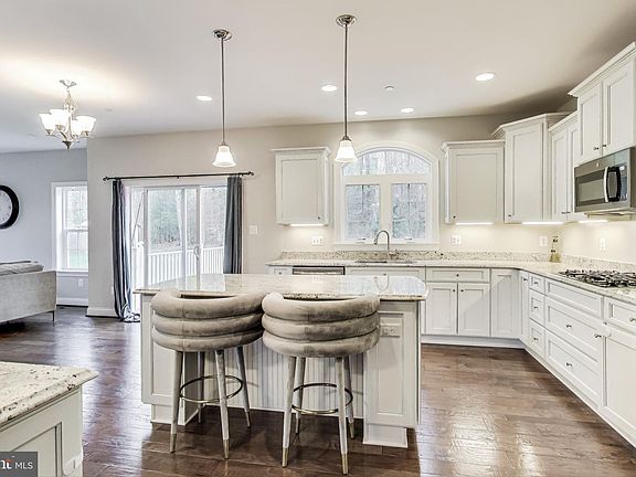 Welcome to your dream home, nestled on 1.2 acres in the picturesque Hunter Springs community of Indian Head, Maryland. Built in 2019 by the esteemed Quality Built Homes Inc., this property showcases premium upgrades and meticulous attention to detail throughout. Spanning over 4,200 square feet across three fully finished levels, this 5-bedroom, 3.5-bath home is designed for both comfort and style. It features a whole-home security system, surround sound hookups in the living room, and a fully finished walk-up basement. From the moment you arrive, the home’s charming front porch, manicured lawn, and mature landscaping offer outstanding curb appeal. Step inside to a welcoming foyer with luxury vinyl plank flooring that flows seamlessly through the main level. To your right, a light-filled living room with elegant crown molding sets the tone for gracious entertaining. The formal dining room exudes classic sophistication with detailed wainscoting, chair rail, and crown molding—perfect for hosting special occasions. The gourmet kitchen is a chef’s dream, complete with granite countertops, stainless steel appliances, double ovens, a cooktop, and a large center island. Step out onto the rear deck—ideal for summer barbecues and quiet evenings with serene forest views. The open-concept layout leads directly into the spacious family room, featuring a cozy fireplace with a stylish mantel—perfect for gathering on chilly evenings. Additional main level highlights include a powder room, a mudroom with access to the two-car garage, and plenty of functional space for everyday living. Upstairs, retreat to the luxurious primary suite with a grand walk-in closet and spa-like ensuite bathroom, complete with dual vanities, an oversized glass shower, a resting bench, and a soaking tub. Three additional bedrooms, a full bathroom, and a convenient upper-level laundry room complete this floor. The fully finished lower level offers a spacious recreation room, a fifth bedroom, a full bathroom, a utility room, and extra storage space—an ideal setup for guests, entertaining, or a home office. Every inch of this home has been thoughtfully designed and lovingly maintained. With its modern upgrades, generous layout, and inviting atmosphere, this stunning property is a must-see. Welcome home!