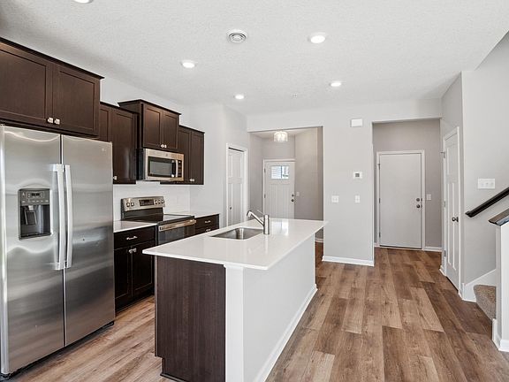 Welcome to this charming 3-bedroom, 2.5-bathroom townhome located in sought-after St. Michael. This beautiful 2-story home offers a blend of modern design and thoughtful details. As you step inside, you're greeted by an open floorplan that seamlessly connects the living room, dining area, and kitchen to create a warm and inviting space. The kitchen is sure to impress with its stainless steel appliances, ample cabinet storage, and a center island that offers additional prep space and a gathering spot for family and friends. An electric fireplace in the family room provides extra warmth and ambiance, and a patio attached to the dining room gives you a nice outdoor space. Upstairs, a loft offers up a secondary living space. The owner’s suite includes en suite bath and walk-in closet. The two secondary bedrooms share a hall bath.. Last, but not least the two-car garage has a 2.5 foot garage bump, giving you extra space!